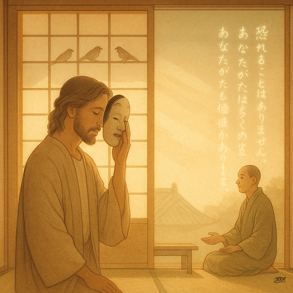 Mira, la vida a veces se parece a un camino muy empinado en las montañas de Japón (yama), donde cada paso se siente como un esfuerzo tremendo. Y justo cuando estás más cansado, aparece Jesús ofreciéndote un momento de descanso, como un pequeño santuario (jinja) en medio del bosque.